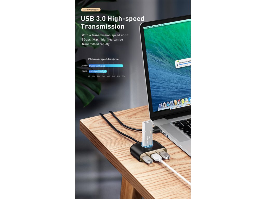 Baseus USB 3.0 HUB 1xUSB 3.0 + 3xUSB 2.0