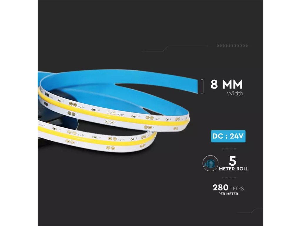 COB LED pojas 10W/m 800lm/m 24V 8mm IP20