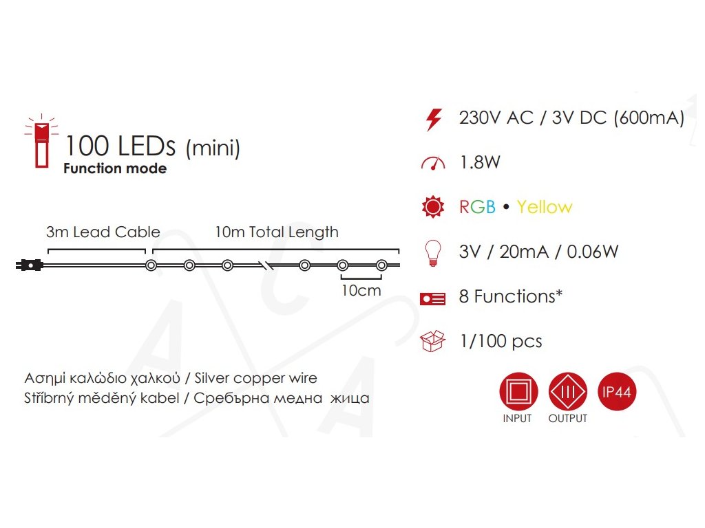 LED dekorativni lanac 10m RGB 8 funkcija [X01100312]