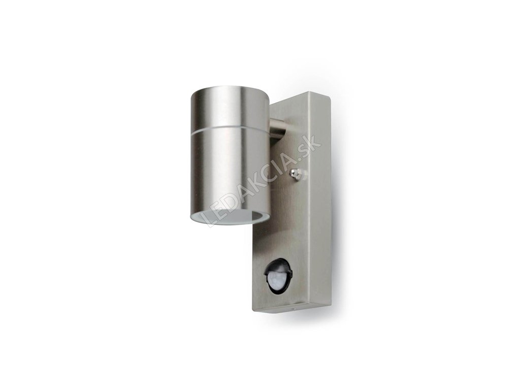 LED GU10 zidne svjetiljke s senzorom pokreta. Posebno dizajniran za vanjsku uporabu. Materijal: nehrđajući čelik. Dimenzije: O110 x 67 x 163 mm. P>
