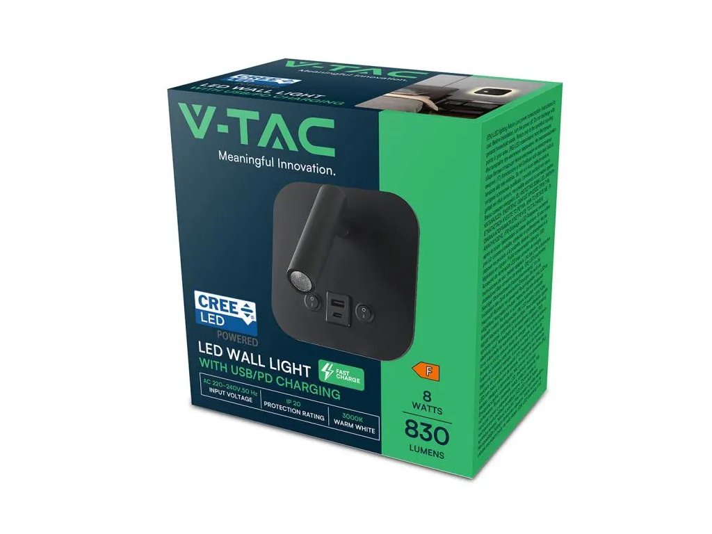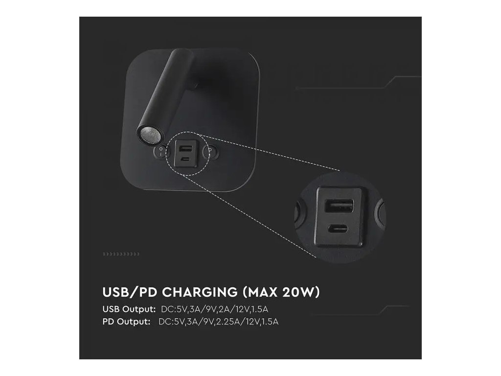 LED noćna lampa 8W, 830lm, CREE CHIP, crna