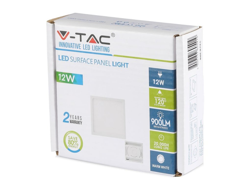 LED nadgradna ploča s napajanjem, 12W, 900lm, kvadratna