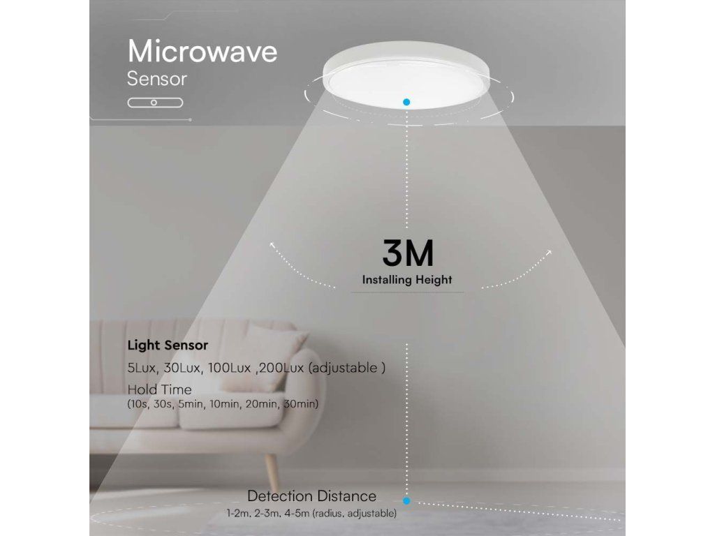 LED svjetiljka s mikrovalnom pećnicom i svjetlosnim senzorom 36W, 3820lm, okrugla, bijeli okvir/2-PACK!