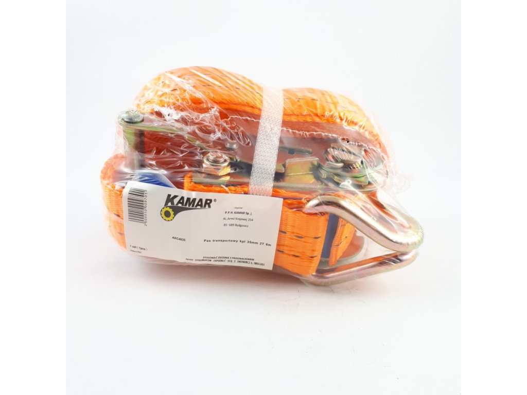 Pojas za pričvršćivanje od 100% poliestera certificiran je prema normama PN-EN 12195-2:2000, AfPS GS 2004:01 PAK. Remen je širok 35 mm a ukupna dužina je 6 m.